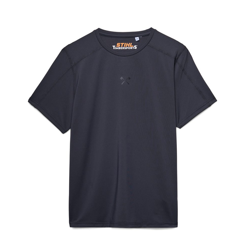 Dankzij het sobere, sportieve design is dit donkergrijze TIMBERSPORTS® functionele T-shirt voor dames eenvoudig te combineren met verschillende outfits. Op de borst prijkt een subtiel ton-sur-ton logo met de iconische gekruiste bijlen, terwijl op de bovenrug een verticale STIHL “TIMBERSPORTS®”-opdruk staat, omlijst met een motief van gekruiste bijlen.