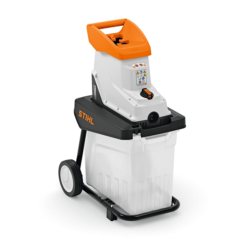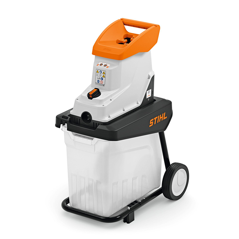 De transparante opvangbox maakt deel uit van deze elektrische en geruisloos werkende hakselaar. Hij kan tot 60 liter versnipperd plantenmateriaal opvangen. Dankzij de handgrepen is de box gemakkelijk te manipuleren. Om de veiligheid te garanderen, werkt de STIHL tuinhakselaar pas wanneer de opvangbox op de juiste manier in de machine geplaatst is.