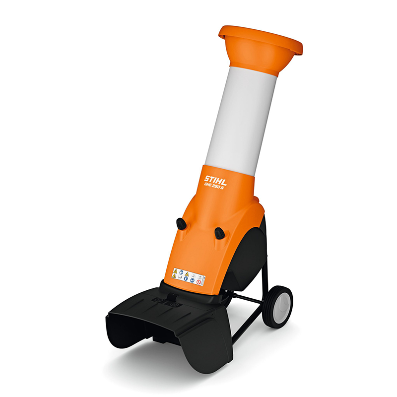 De STIHL elektrische hakselaar GHE 250 S bewijst zijn waarde bij regelmatige hakselbeurten om middelgrote hoeveelheden plantenmateriaal te verkleinen. Het mesmechanisme verwerkt in de eerste plaats takken met een dikte tot 35 mm, die aangevuld kunnen worden met gemengd plantenmateriaal. De efficiënte messen worden aangedreven door een krachtige motor en leveren een optimaal hakselresultaat op. Dankzij de praktische transportwielen is de elektrische tuinhakselaar gemakkelijk te verplaatsen.