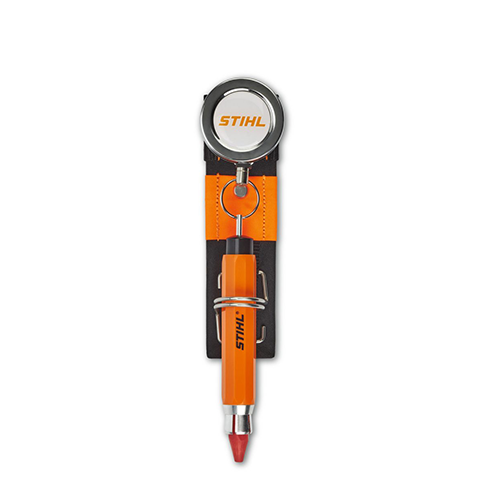 De STIHL Houder voor krijthouder maakt deel uit van het modulaire bandsysteem STIHL Advance X-Flex. Als professionele boswerker die krijt nodig heeft voor markeringen, is het handig om het altijd binnen handbereik te hebben. Tegelijkertijd moet het veilig kunnen worden opgeborgen tijdens andere activiteiten. Precies hiervoor is de STIHL Houder voor krijthouder ontworpen. Enerzijds biedt de meegeleverde haspel met een lang metalen touw een bijzonder grote actieradius bij het markeren, bijvoorbeeld met het markeerkrijt STIHL Marker Pro. Aan de andere kant zorgt een metalen beugel ervoor dat het krijt tijdens het transport altijd betrouwbaar aan de houder vastzit.