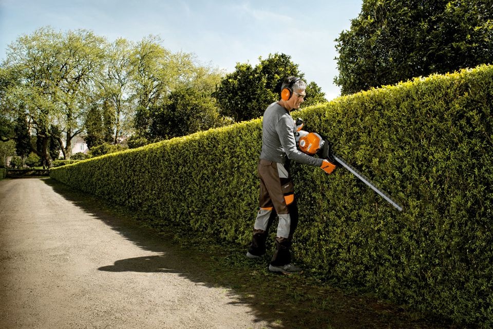 Gummibuffers resp. staalveren reduceren de trillingen die op de greep overgedragen worden tot een minimum en maken krachtenbesparend werken mogelijk. De afbeelding toont de STIHL HS 82.