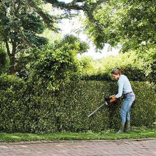 De motorkast heeft een glad oppervlak en ronde contouren. Dit verhindert dat takken klemmen aan de machine. Deze heggenscharen zijn niet vervuilend en heel makkelijk in onderhoud.