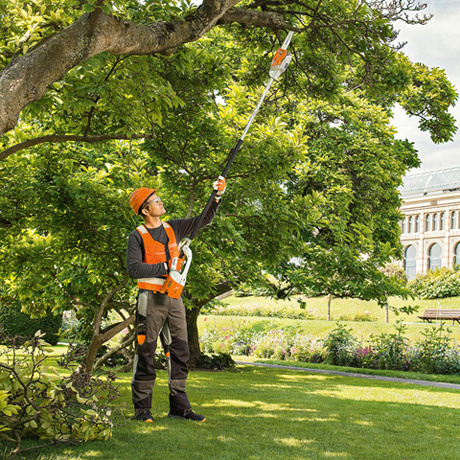De STIHL accu hoogsnoeier HTA 66 is een uitstekend gereedschap voor het uitdunnen van boomtoppen en het snoeien van kleine en middelgrote bomen, ongeacht of je een boomkweker, fruitteler of gemeentewerker bent. Dankzij de lichte en krachtige motor van STIHL, die duurzaam en onderhoudsvrij is, en het krachtige AP accusysteem, is deze hoogsnoeier de ideale combinatie voor het snoeien van takken tot 12 cm in diameter. Het is een stille machine die ook geschikt is voor gebruik in geluidsgevoelige omgevingen, zoals de binnenstad.