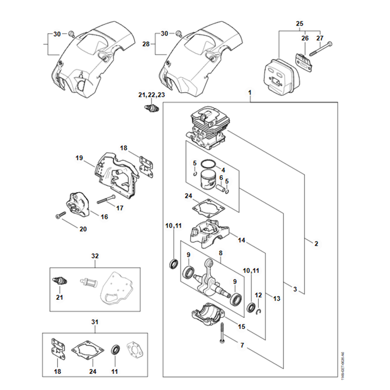 STIHL MS 162 Carter, Cilinder, Uitlaatdemper, Afdekkap - onderdelen