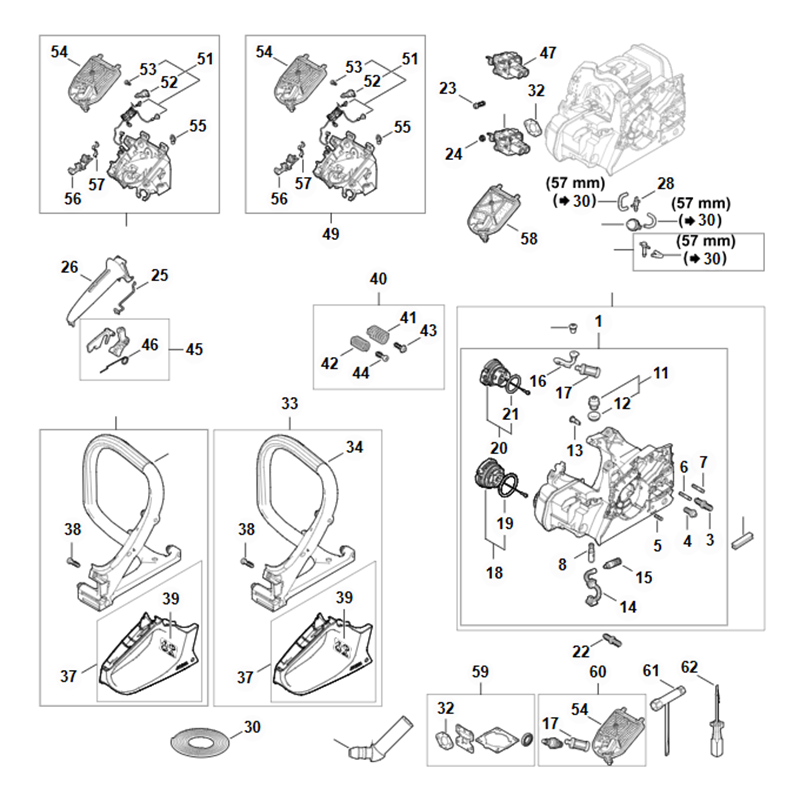 STIHL MS 182 Carter, Luchtfilter, Rubberdemper, Handgreep - onderdelen