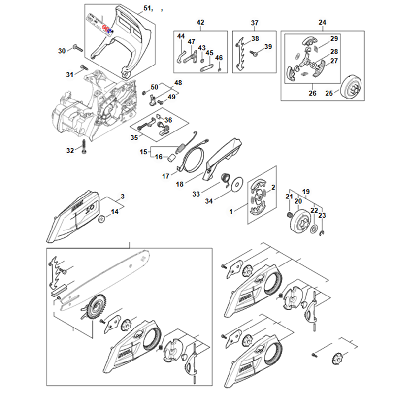 STIHL MS 182 Koppeling, kettingrem - onderdelen
