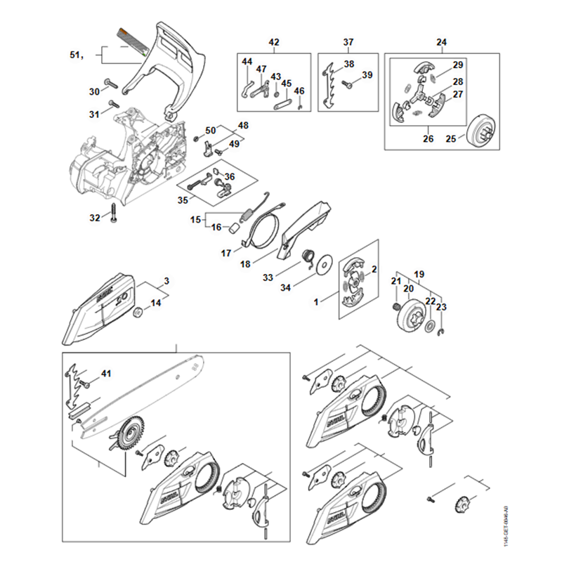 STIHL MS 212 Koppeling, kettingrem - onderdelen