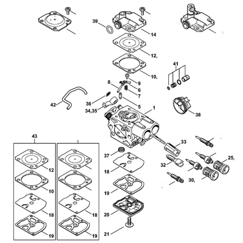 Ben je op zoek naar onderdelen voor de MS 231? Hierboven zie je de onderdelentekening van een specifieke categorie binnen de machine. Elk onderdeel is genummerd, zodat je snel en eenvoudig kunt vinden wat je nodig hebt.