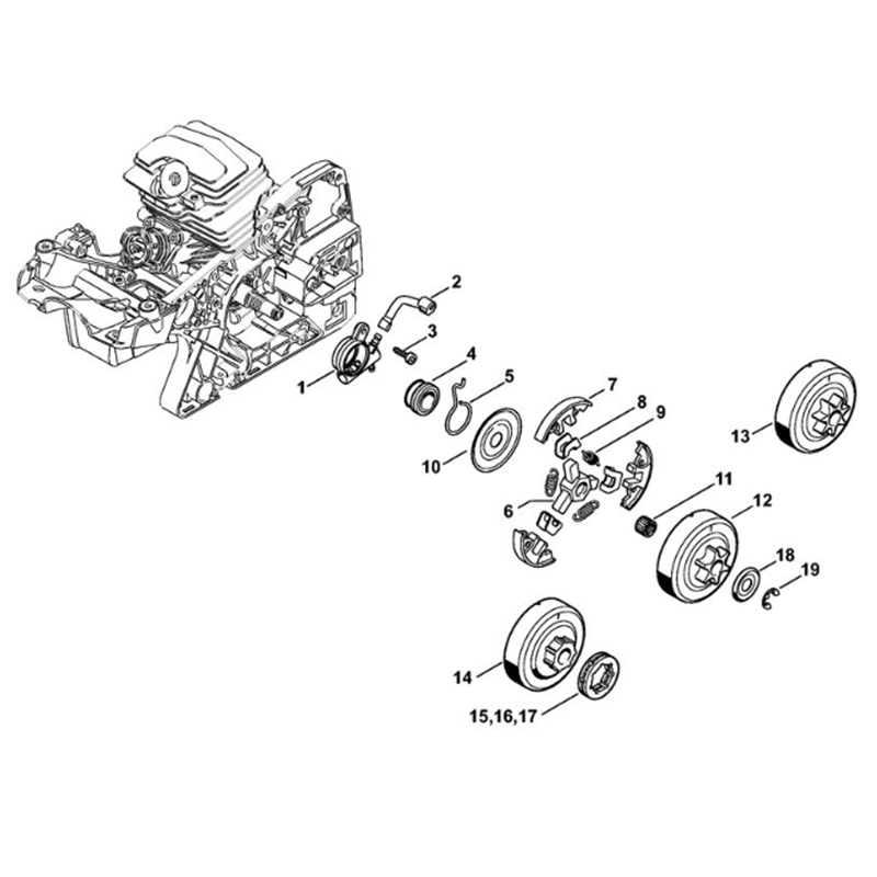 STIHL MS 231 Oliepomp, koppeling - onderdelen