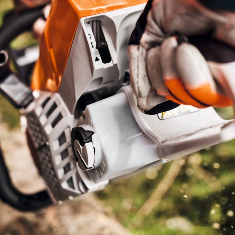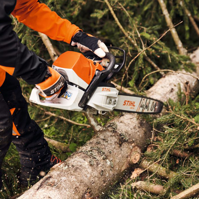 De zaag wordt aangedreven door een efficiënte STIHL 2-MIX-motor, die zuinig en krachtig werkt. Dankzij STIHL M-Tronic-technologie blijft de motor constant op maximaal vermogen draaien, wat zorgt voor optimale prestaties, zelfs onder uitdagende omstandigheden.