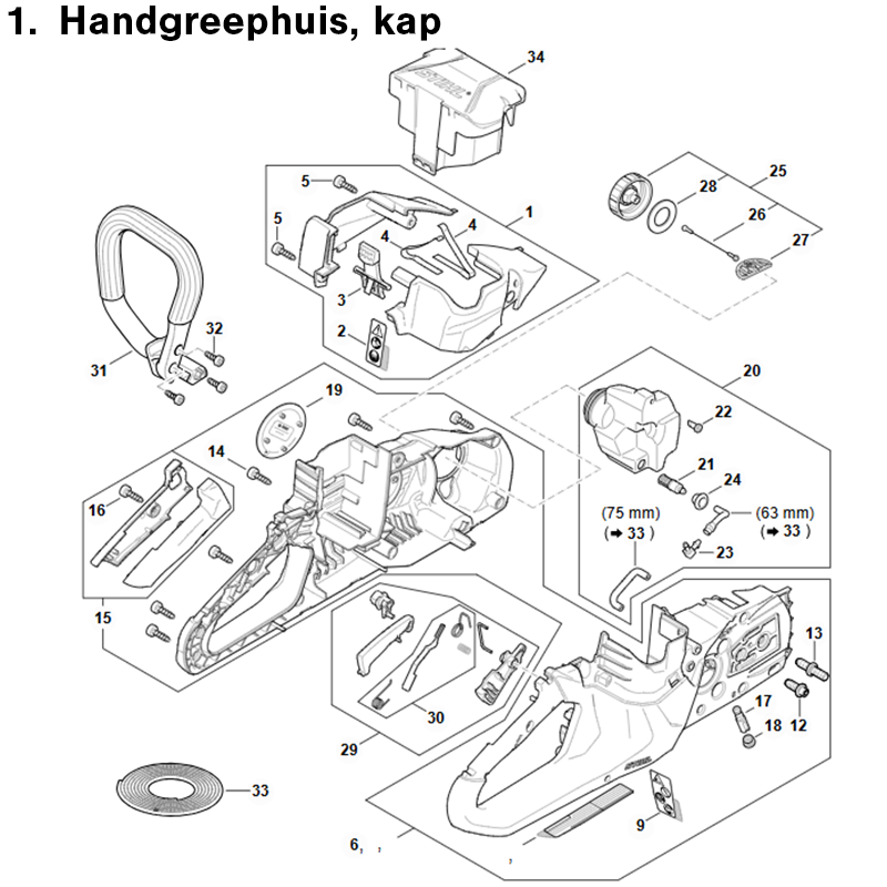1. Handgreephuis, kap
