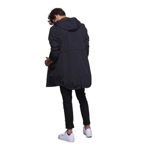 Waterdichte parka voor heren. Praktische binnenvoering met gaasmateriaal op de schouders en borst, oranje tunnelmouwen. Kortom: een robuuste metgezel en ideaal voor de herfst en de lente. Betrouwbaar en functioneel.