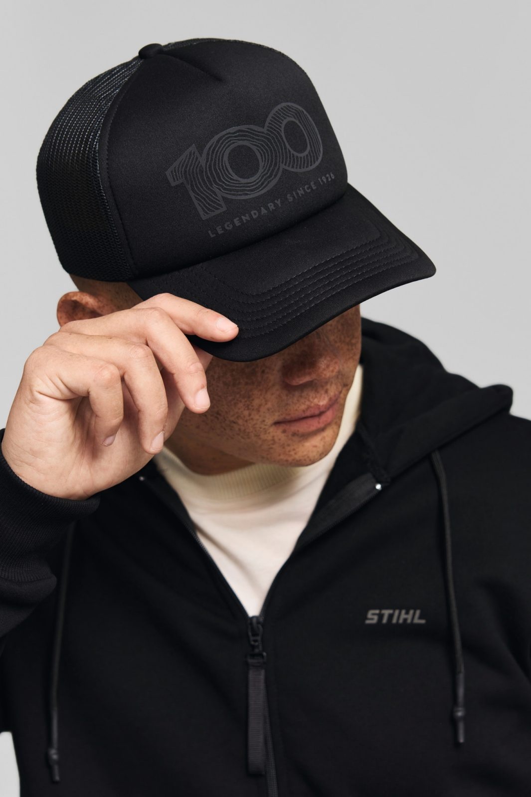Ter gelegenheid van 100 jaar STIHL laat deze uniseks zwarte pet zien dat je een echte fan bent. De achterzijde is uitgevoerd in ademende mesh, terwijl de verstelbare band zorgt voor een comfortabele en perfecte pasvorm. Op de voorzijde van de gevoerde pet prijkt een zwart reflecterend “100 LEGENDARY SINCE 1926”-motief, speciaal ontworpen ter ere van het jubileum en goed voor een onmiskenbare uitstraling. De klep is afgewerkt met zes sierstiksels, wat de pet een stijlvolle en unieke look geeft.