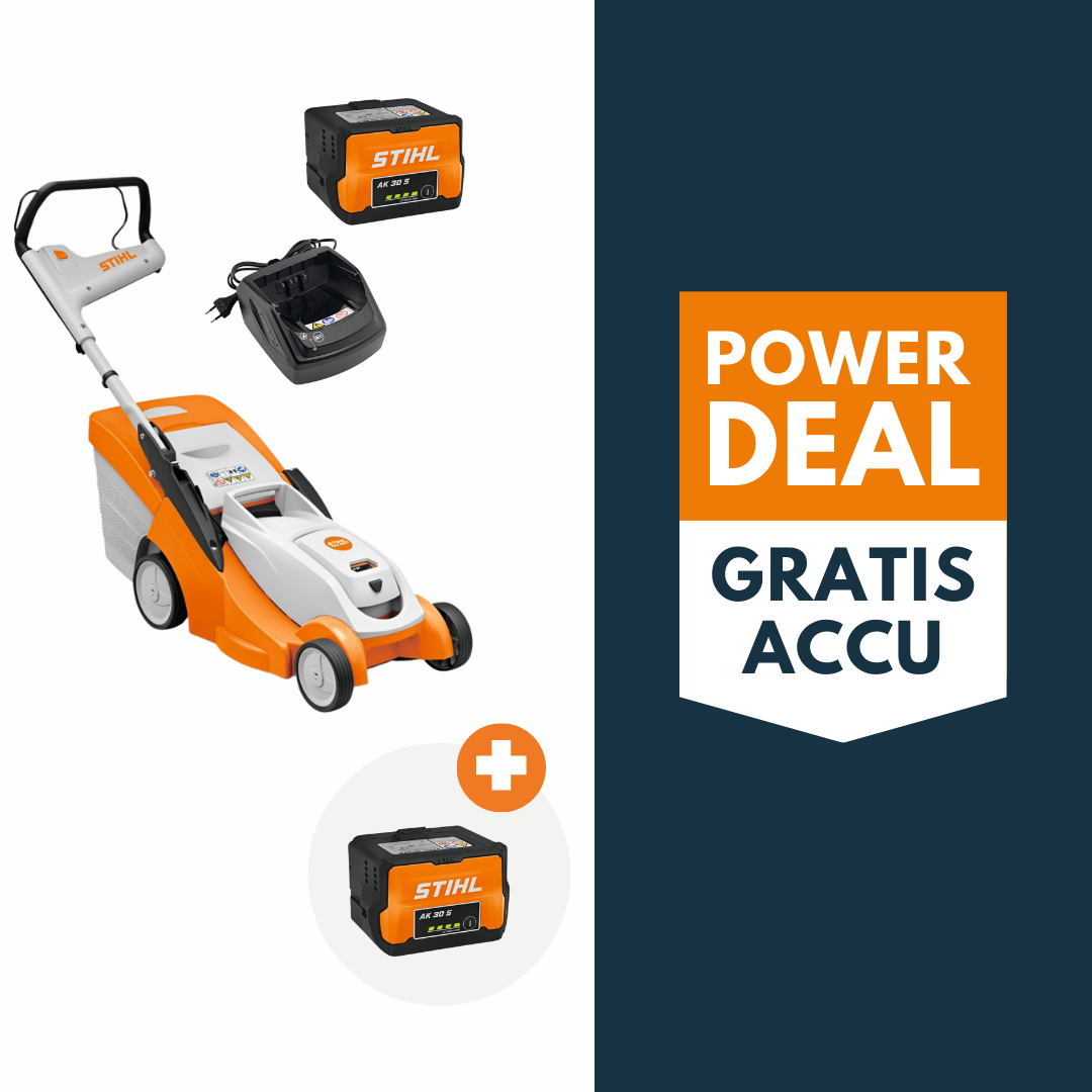 Bij aankoop van deze tijdelijke STIHL RMA 239 C accu grasmaaier actieset met 2x AK 30 S accu en 1x AL 101 standaardlader, ontvang je de 2de AK 30 S accu gratis. De gratis accu bevindt zich reeds in de set. Je hoeft hier dus niets extra voor te doen.
