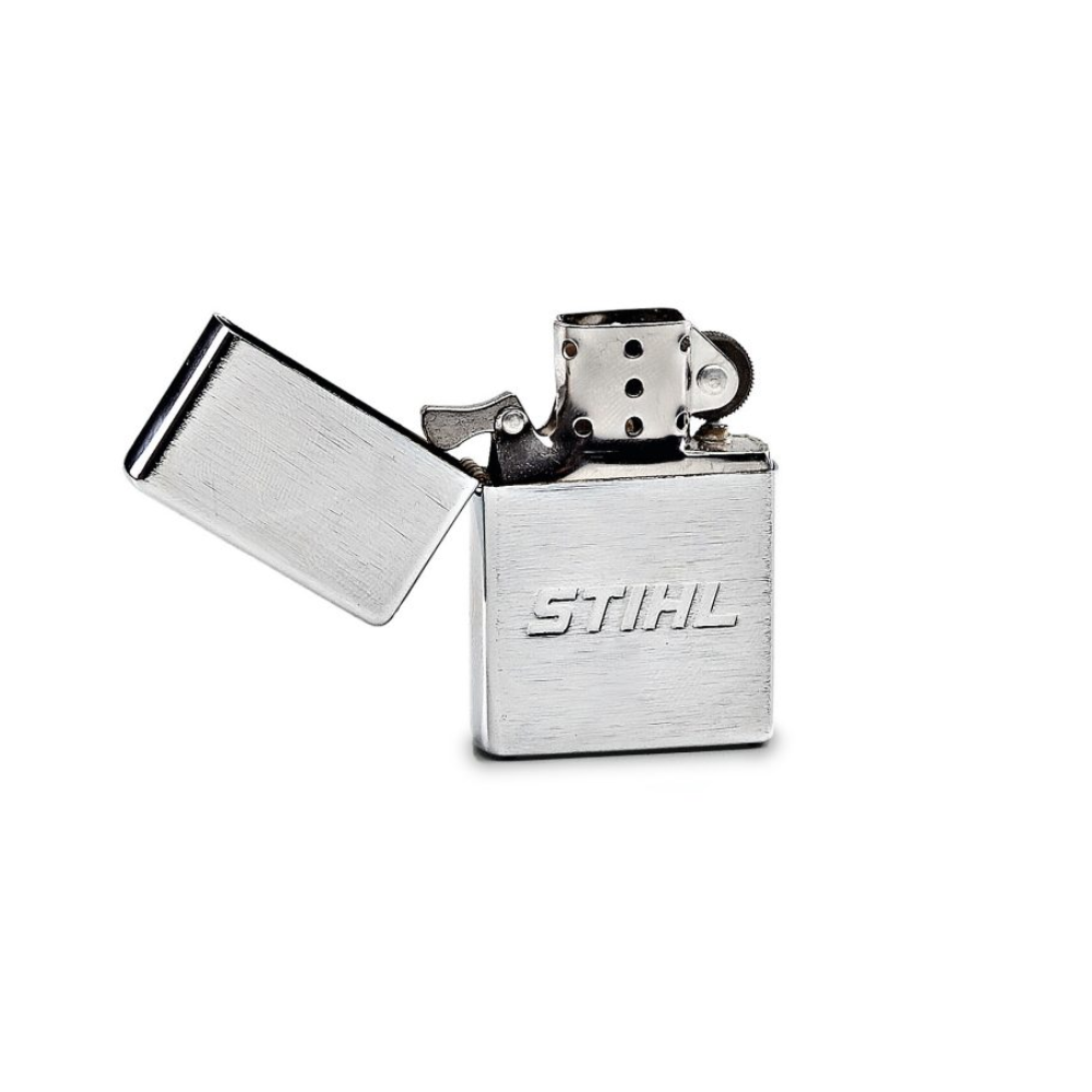 De STIHL stormaansteker is een handzame stormaansteker met zilveren kleuren en STIHL logo.