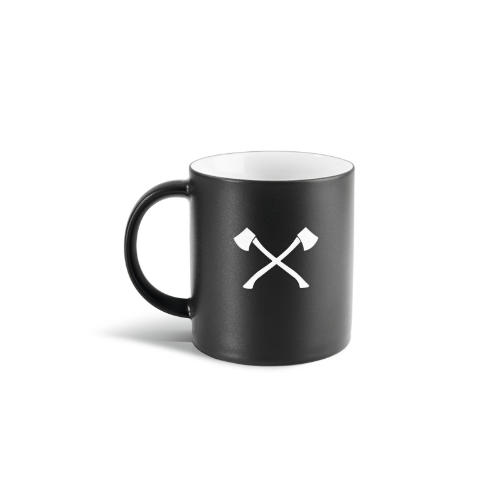 De STIHL TIMBERSPORTS Mok is matzwart en gemaakt van hoogwaardig porselein. Deze porseleinen mok van STIHL is versierd met een hoogwaardige gravure van de beroemde 'TIMBERSPORTS®' gekruiste bijlen.
