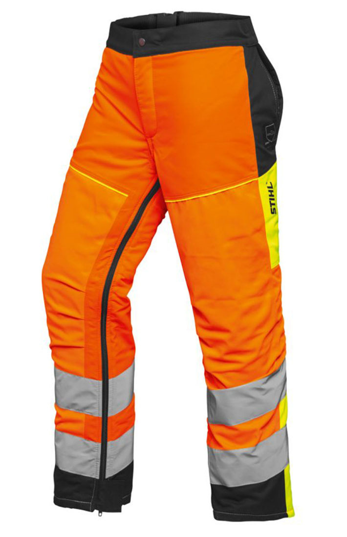 Volledige beenbeschermers voor incidenteel kettingzaaggebruik of in het geval van meerdere gebruikers. Ventilatiemateriaal ter hoogte van het dijbeen achteraan, gesloten rits aan de bovenkant en een gladde voering voor supersnel aantrekken en sluiten, voorgevormde knie voor een groter comfort. Kleur fluorescerend oranje.