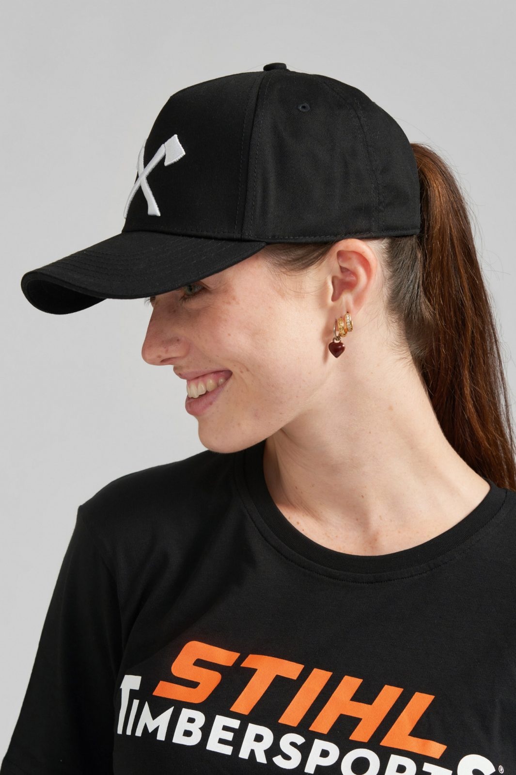 Deze klassieke zwarte baseballpet is een must-have voor alle STIHL TIMBERSPORTS®-fans. De voorkant is stijlvol voorzien van een geborduurde opdruk met gekruiste bijlen in reliëf, terwijl de achterkant is afgewerkt met een TIMBERSPORTS®-label. Dankzij de verstelbare sluiting biedt de pet een perfecte pasvorm voor iedereen. Verkrijgbaar met een geborduurd motief in wit of grijs voor een subtiele, sportieve look.