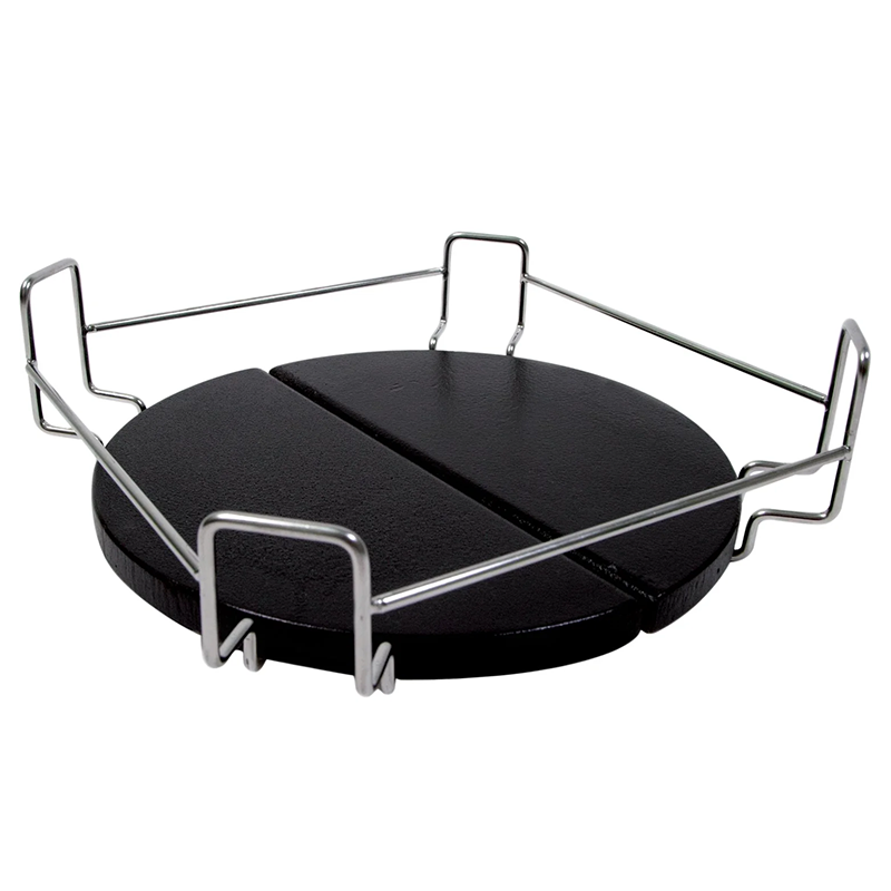 Wil je kip indirect garen, zalm roken, grote stukken vlees langzaam koken of spare ribs en pulled pork roosteren? Dan is de Plate Setter (hitteverdeler) de perfecte keuze voor jou. Deze keramische plaat transformeert The Bastard in een oven, zodat je vlees, groenten of vis gelijkmatig garen zonder het risico op verbrandingen. Daarnaast is de Plate Setter ook essentieel voor het maken van de lekkerste pizza's in combinatie met een pizzasteen. De keramische Plate Setter bestaat uit twee delen: een roestvrijstalen houder en een aparte ronde steen gemaakt van cordieriet-keramiek.