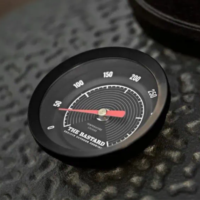De The Bastard VX kamado combineert functionaliteit met stijl en duurzaamheid. Het ergonomische handvat van gepoedercoat RVS met geoliede bamboe biedt niet alleen een robuuste uitstraling, maar is ook duurzamer dan traditioneel hout. De verstevigde zijtafels met stalen frame en een speciale stopscharnier beschermen zowel de tafel als het keramiek, wat de kamado verder versterkt. De nauwkeurige luchtschuif biedt verbeterde temperatuurcontrole en een stijlvolle, zwarte afwerking. Met grotere wielen is de kamado gemakkelijker te verplaatsen, zelfs over oneffen terrein. Het heavy duty onderstel van gevouwen staal is extra versterkt voor robuust gebruik. De vernieuwde geëmailleerde topvent zorgt voor efficiënter temperatuurbeheer, en de betere thermometer maakt het aflezen nog eenvoudiger, wat de kamado niet alleen functioneel maar ook visueel aantrekkelijk maakt.