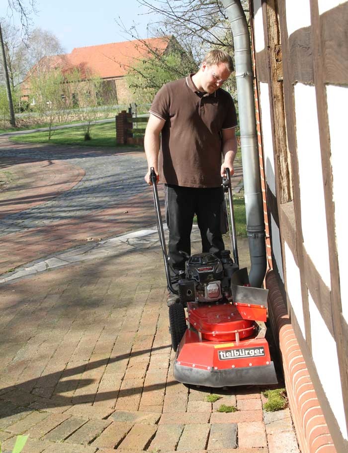 Met de Tielbürger borstelmachine TW50S is het verwijderen van onkruid een fluitje van een cent. Met een werkbreedte van 50 cm in combinatie met de opmerkelijke wendbaarheid van de machine kost deze klus je weinig tijd én weinig energie! Deze onkruidmachine heeft een snelschakeling tussen wielblokkering en differentieel. Een nuttige accessoire is het geveerde steunwiel welke in hoogte verstelbaar is.