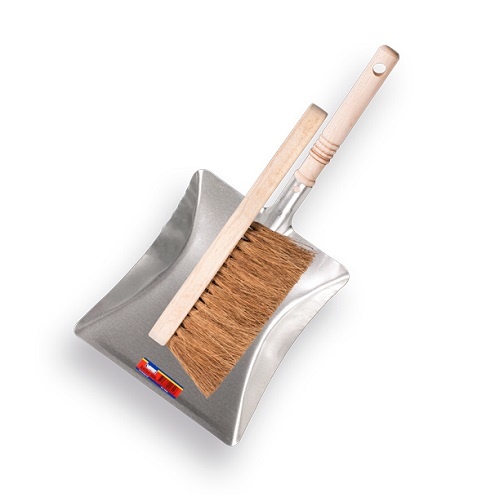 VERO 8454 stofblik gemaakt van gegalvaniseerd blik met kokos vezel stoffer. Door het compacte formaat is hij geschikt om zowel kleine als middelgrote veegklussen makkelijk op te vegen.