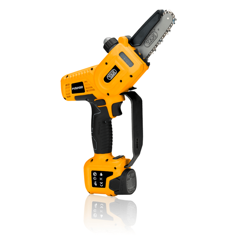 De PVS5100 is voorzien van een kettingolie-pomp met een praktische primer op de oliedop voor gemakkelijke kettingsmering, wat zorgt voor een soepele werking. Het zaagblad heeft een lengte van 80 mm, ideaal voor het snoeien van takken en het uitvoeren van andere tuin- en houtbewerkingstaken.